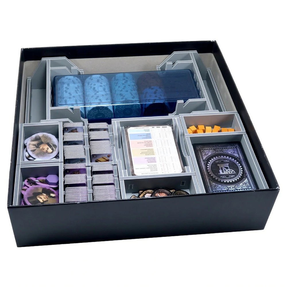 Insert compatibil cu jocul Brass: Birmingham sau Brass: Lancashire, atat editia Retail, cat si cea Deluxe. Multe dintre tavite pot fi utilizate in timpul jocului si ajuta foarte mult la configurare si la economisirea timpului. Regulile si placile de joc