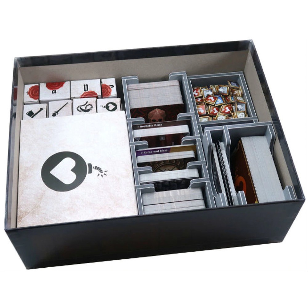 Insert compatibil cu jocul Gloomhaven: Jaws of the Lion. Design-ul ofera atat un spatiu de stocare eficient, dar ajuta si la imbunatatirea jocului. Multe dintre tavite pot fi utilizate in timpul jocului si ajuta foarte mult la configurare si la economisi