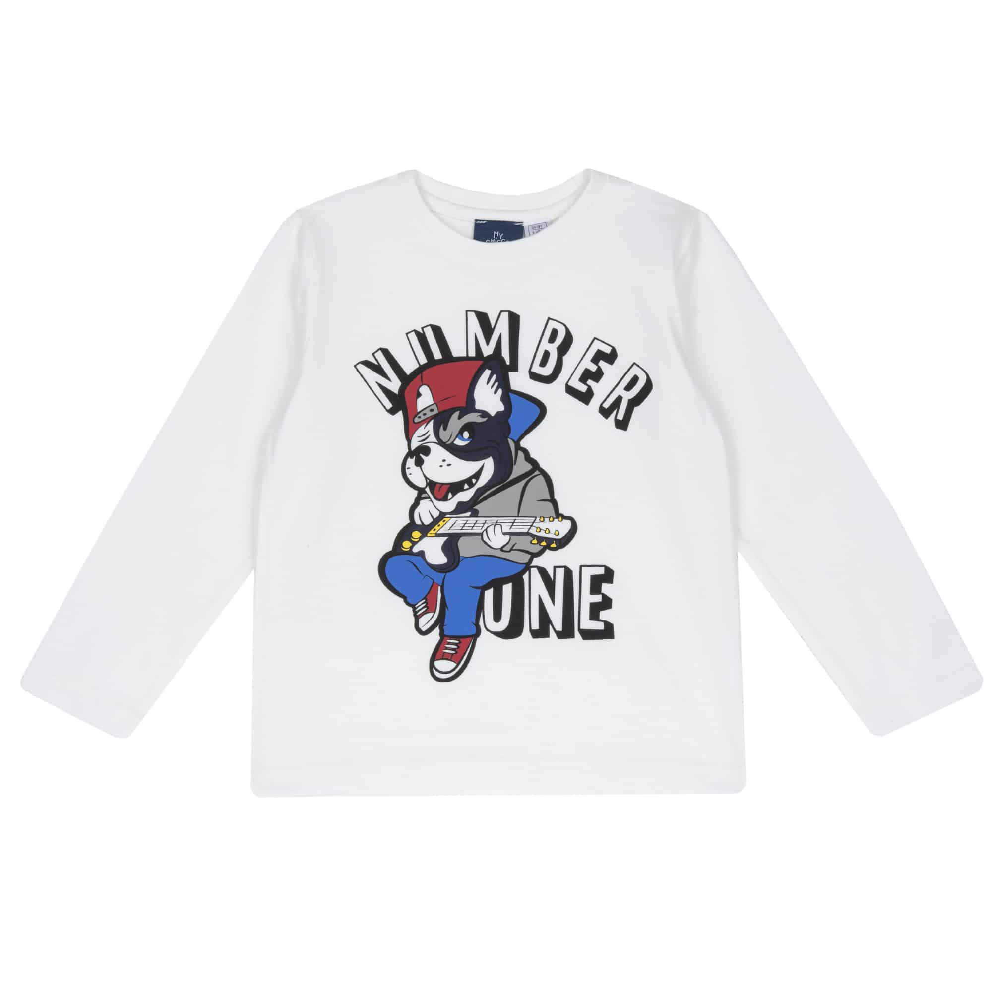 Tricou cu maneci lungi, imprimeu decorativ, bordura elastica la gat, realizat din 95% bumbac Bio si 5% vascoza, este marcat Sustainable Parenting si detine certificare OEKO-TEX: calitate pentru copilul tau.