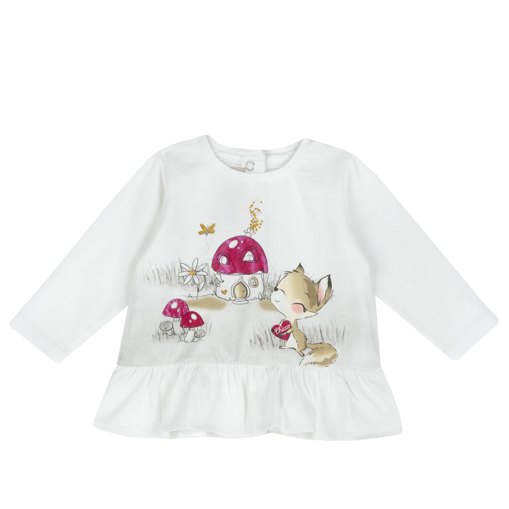 Tricou cu maneci lungi, cu imprimeu delicat si volanas, cu inchidere in spate, realizat din 95% bumbac Bio si 5% elastan, poarta eticheta: Sustainable Parenting