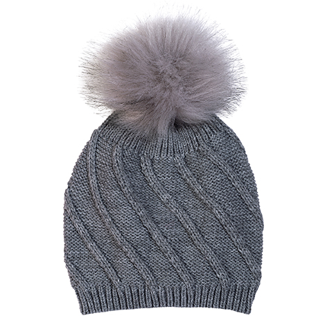 Caciula cu ciucure din blanita sintetica si bordura elastica. Tricotata cu model, din fire de 100% acryl, caciulita este moderna, calduroasa si confortabila.