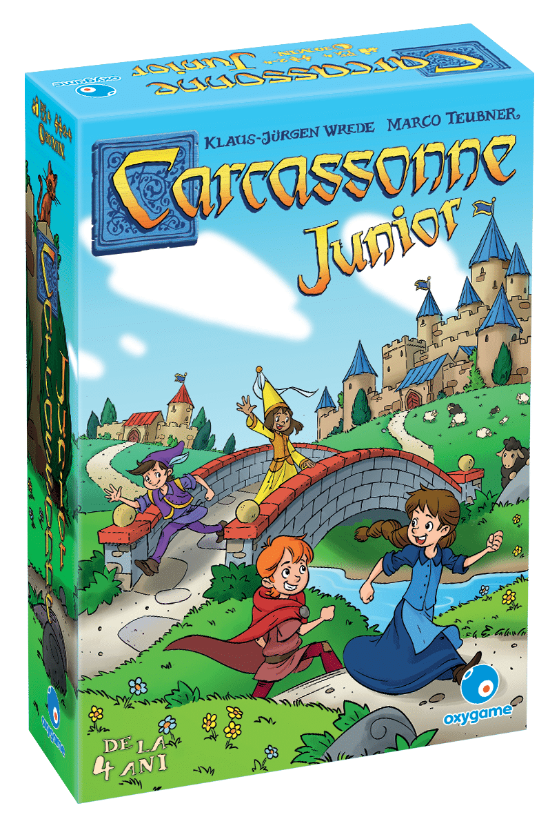 Copiii pot acum descoperi maretul oras Carcassonne cu acest joc distractiv de asezare a cartonaselor.Atmosfera de sarbatoareOrasul Carcassonne celebreaza sarbatoarea nationala a Frantei. Conform traditie, oamenii sarbatoresc aceasta zi prin eliberarea oilor, gainilor si vacilor care se plimba liber strazile orasului. Din zori pana la apus copiii din Carcassonne se distreaza de minune incercand sa duca inapoi la casele lor aceste animale. Cu jocul Carcassonne Junior jucatori de toate varstele pot experimenta o noua versiune a unui clasic modern. La fiecare tura, asezi pe masa de joc un cartonas pentru a construi orasul medieval Carcassonne. Pe masura ce jocul inainteaza, copiii din Carcassonne – ilustrati pe cartonase – umple strazile orasului incercand sa prinda animalele. De fiecare data cand inchizi o strada cu unul sau mai multi copii marcati cu culoarea aleasa de tine poti pune pioni pe tabla de joc. Primul jucator care reuseste sa-si plaseze toti pionii castiga jocul.Alatura-te distractiei!Conceput pentru copii de la patru ani in sus, Carcassonne Junior transporta copiii in distractia construirii orasului Carcassonne. Jocul mentine designul de baza care a facut din jocul original Carcassonne un clasic, in timp ce elimina nevoia de a calcula scoruri inalte. Plaseaza cartonasele si cati mai multi dintre pionii tai. Strazile vor rasuna de rasete pe masura ce animalele sunt prinse si duse acasa in siguranta.