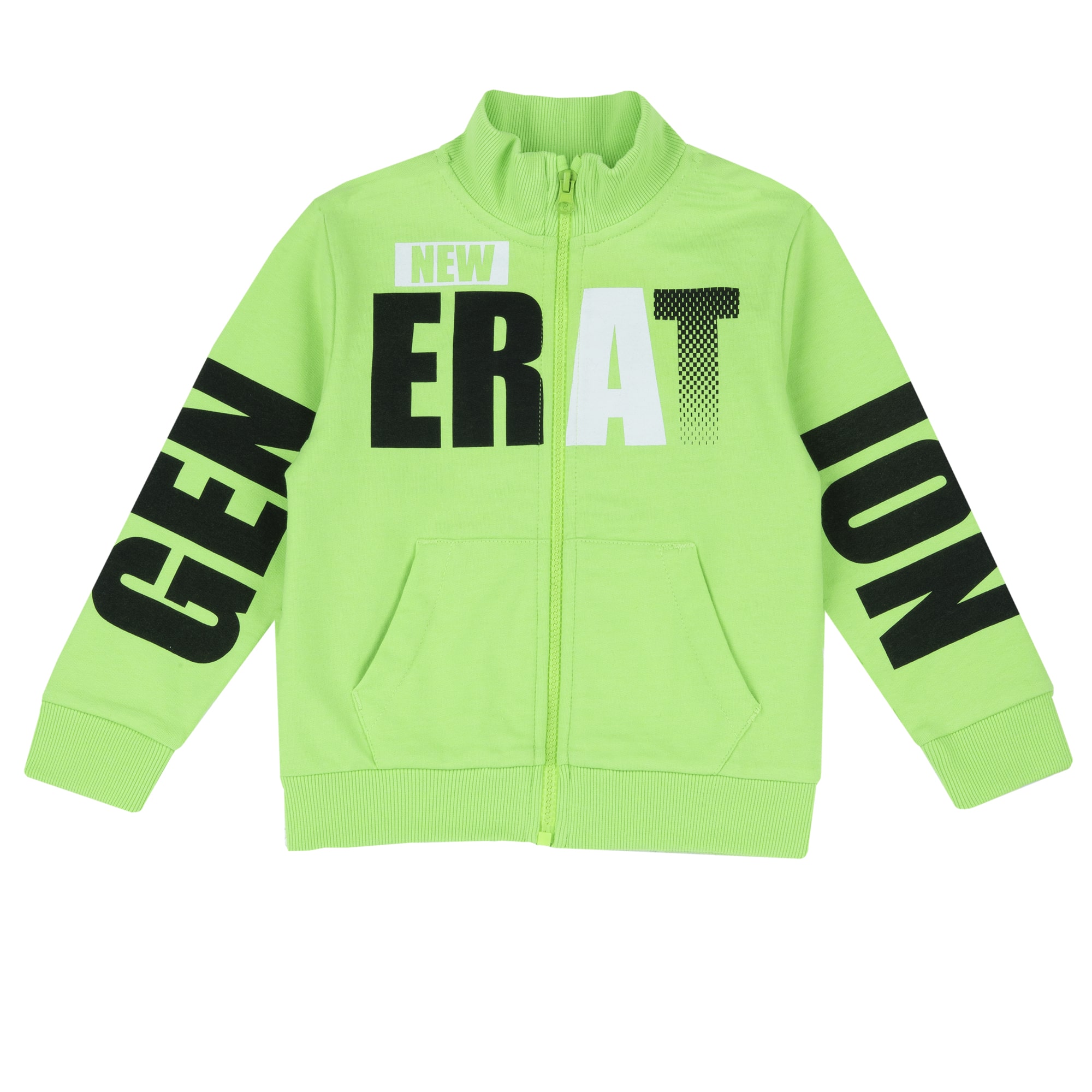 Bluza de trening cu inchidere in fata cu fermoar, mansete elastice si bucunare aplicate, realizata din 100% bumbac, detine certificare OEKO-TEX: calitate pentru copilul tau
