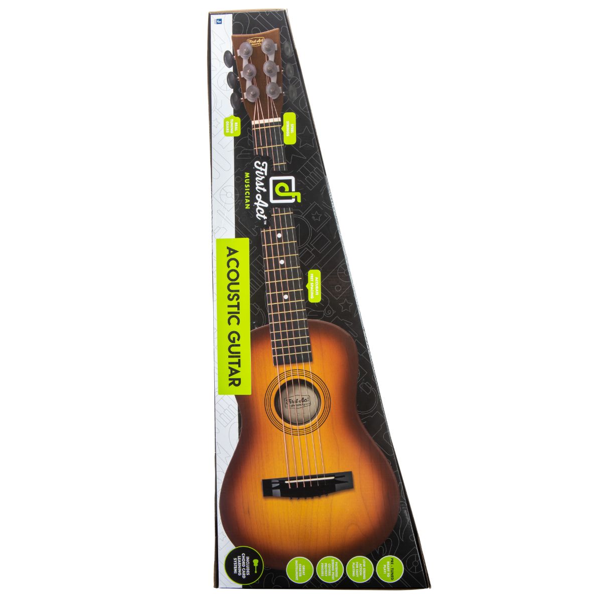 Inspirati creativitatea cu chitara acustica First Act! Aceasta chitara este pre-reglata, astfel incat sa puteti incepe sa cantati imediat ce o scoateti din cutie. Gatul armat cu otel de inalta calitate face acest instrument extrem de durabil! Aceasta chitara acustica are corzi din alama. Cardurile Chord incluse fac ca sirurile de invatare si pozitionarea mainilor sa fie usor de facut! Chitara acustica First Act este perfect dimensionata, ceea ce face ca muzicienii adolescenti sa o transporte usor!Dimensiuni articol ambalat: 8 x 30 x 83 cmVarsta recomandata: 6 ani +