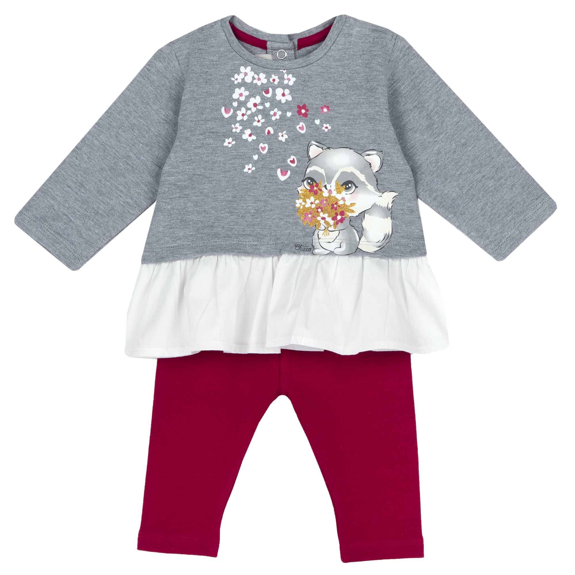 Costum bebe Chicco, tricou si pantaloni, gri deschis, 00772-63MFCO