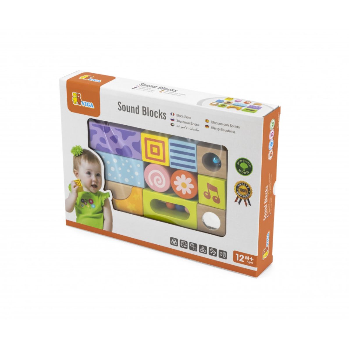 Aceasta jucarie include 12 cuburi care produc diferite sunete. In culori pastelate si cu margini rotunde este o jucarie senzoriala excelenta pentru cei mici. Jucarie educativa din lemn, Montessori. Dimensiuni produs in ambalaj: 30 x 4 x 21 cmGreutate produs: 625 gVarsta recomandata: 12 luni +