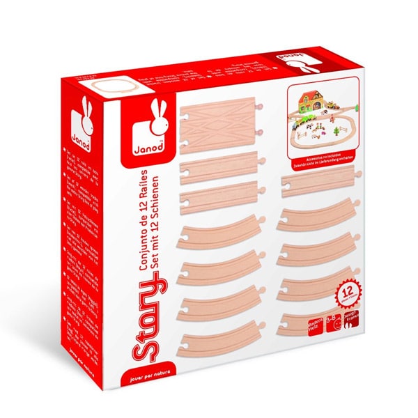Cutie cu jucarii de lemn – Story Railway, 12 piese | Janod