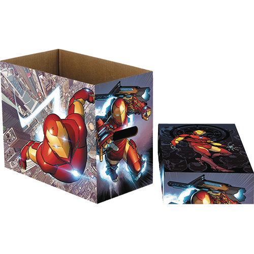 Aceasta cutie de depozitare cu imaginea mult indragitului super-erou Iron Man este metoda perfecta de depozitare a colectiilor de comics din universul Marvel. In cutie se pot pastra aproximativ 150 de reviste.