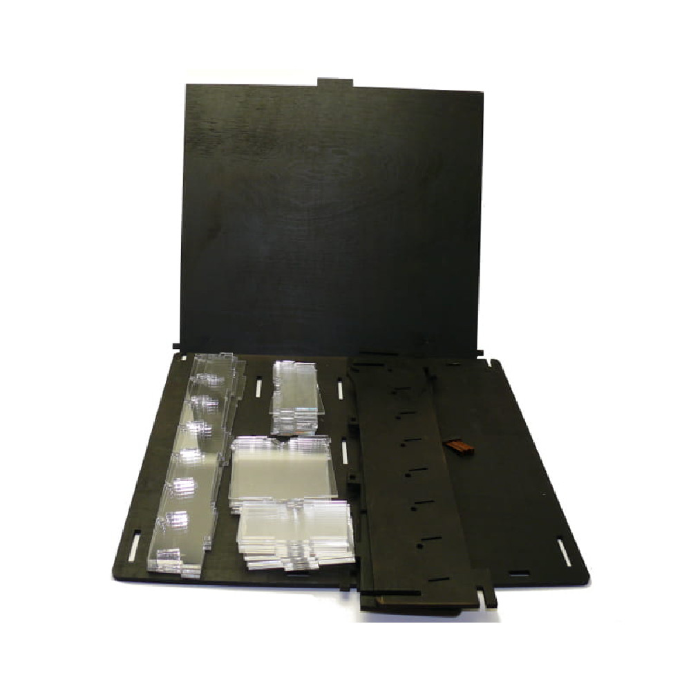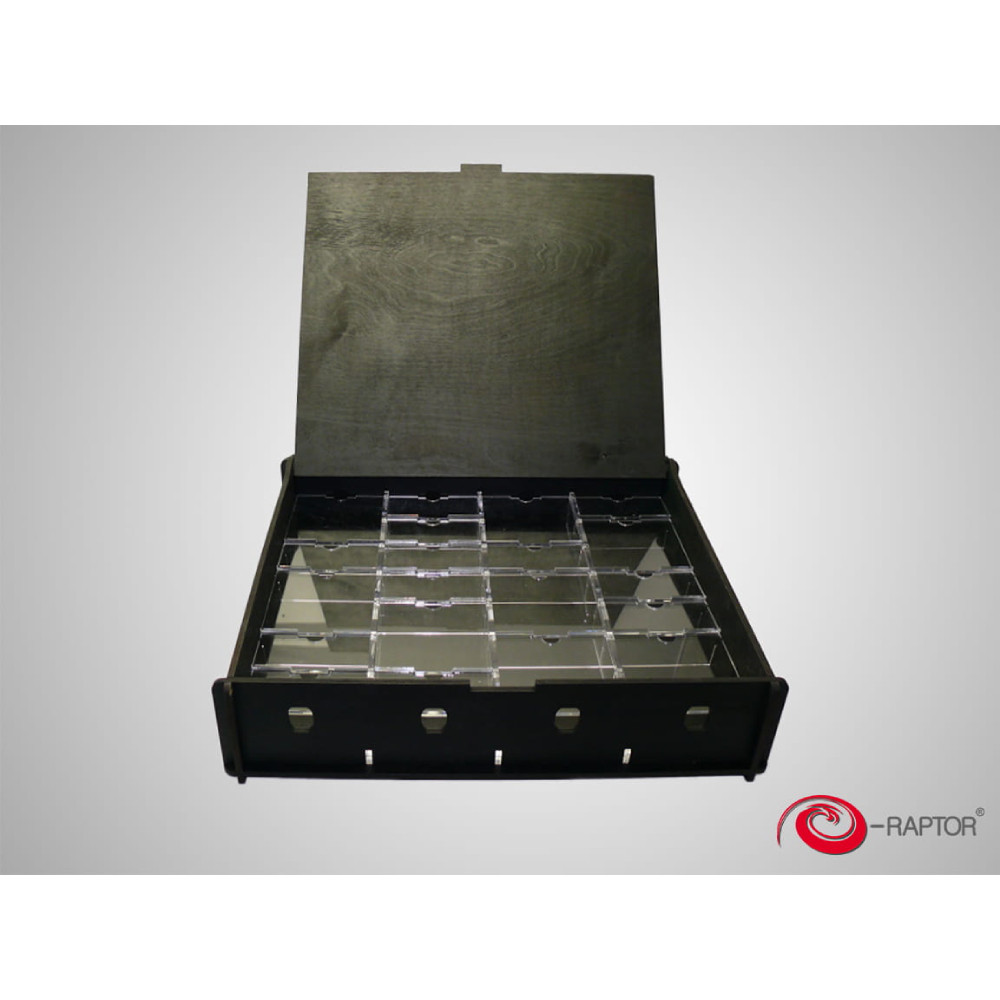 Aceasta cutie de depozitare este fabricata din placaj de inalta calitate, este usor de asamblat si nu necesara lipire. Cutia include 28 de separatoare din plexigas si este conceputa special pentru a adaposti tot ce aveti nevoie sa folositi in jocurile pr