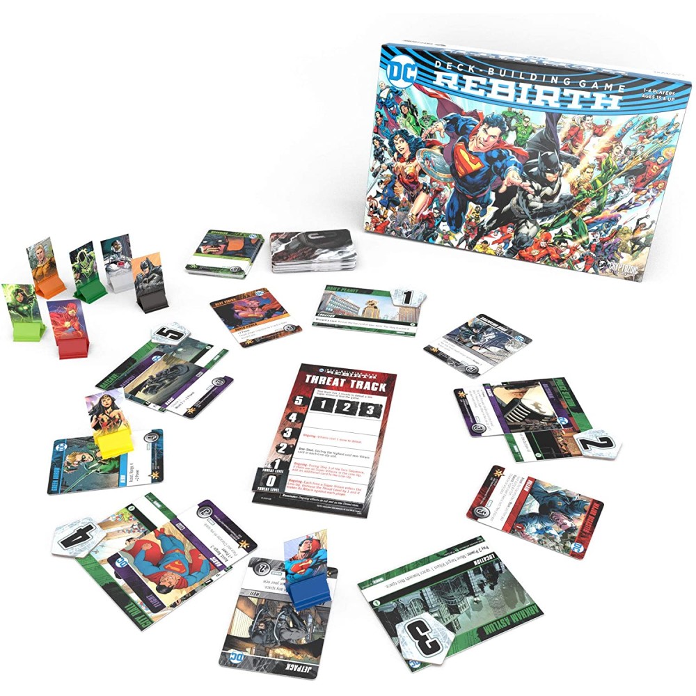 Jocul DC Deck-Building: Rebirth introduce notiunea de miscare in universul DC Deck-Building Game prin intermediul a opt personaje, capete de afis, precum Batman, Superman, Wonder Woman, Flash si Aquaman. Miscarea si relatiile spatiale sunt o parte import
