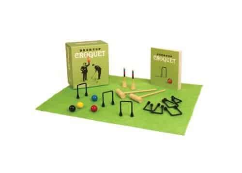 The classic lawn game played by royals and celebrities is now desktop-friendly! Kit is packed with two mallets, four balls, nine wickets, two end posts, a playing mat, and a 32-page illustrated book. It’s time to put the ball in play!