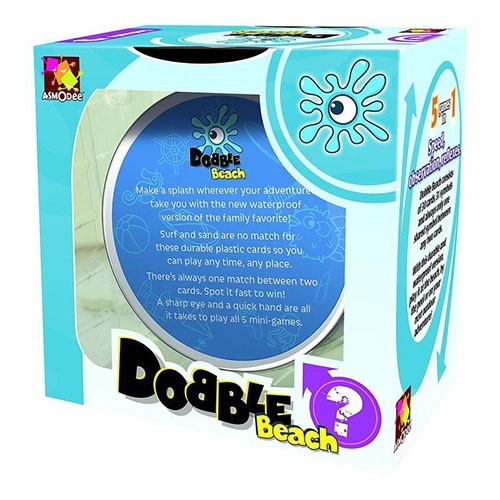 Pregatiti-va de vacanta cu noul joc Dobble Beach. Aceasta noua versiune este rezistenta la apa si include un saculet, fapt ce o face perfecta pentru plaja.