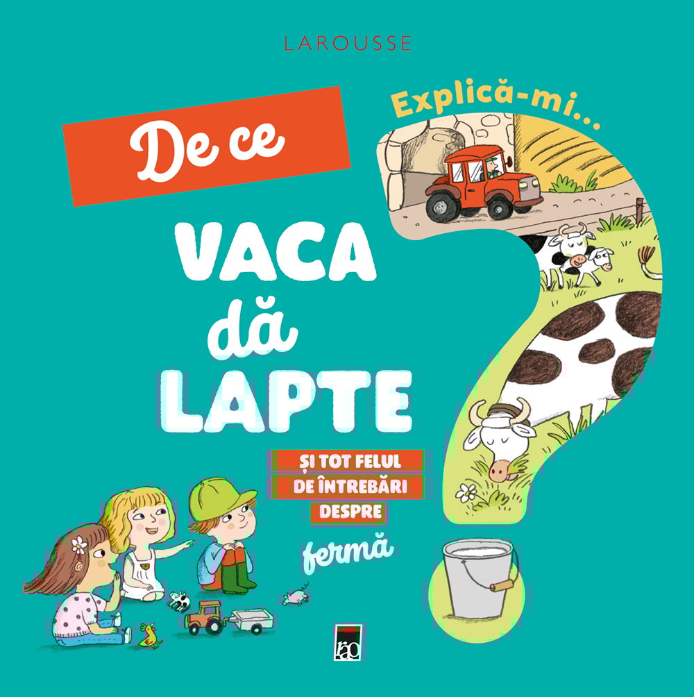 Aveti un copil prin preajma? E la varsta cand pune tot felul de intrebari? Iata o carte potrivita pentru aceasta etapa. Explica-mi: De ce vaca da lapte, a doua din serie, raspunde la 11 intrebarii puse decei mici, intr-un stil prietenos si amuzant. Ilustratiile de pe pagina din stanga exemplifica totul, iar clapeta ofera raspunsuri pe intelesul lor. Pagina din dreapta aduce informatii care completeaza tabloul, pentru ca cei mici sa afle cat mai multe despre fiecare subiect. De ce nu sunt puisori in toate ouale? De ce e porcul murdar? De ce pe camp plantele cresc in randuri? De ce dintii iepurilor sunt lungi? Iata cateva dintre intrebarile la care cei mici vor gasi raspunsuri amuzante si frumos ilustrate. La finalul cartii, un tablou reuneste tot ce au aflat copiii despre ferma. Numar pagini: 32Dimensiuni: 13 x 20.5 cmTip carte: CartonataAn aparitie: 2019Autor: Larousse