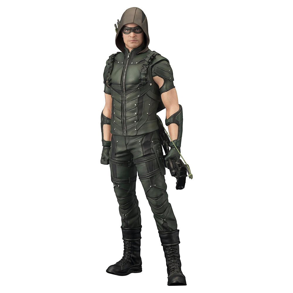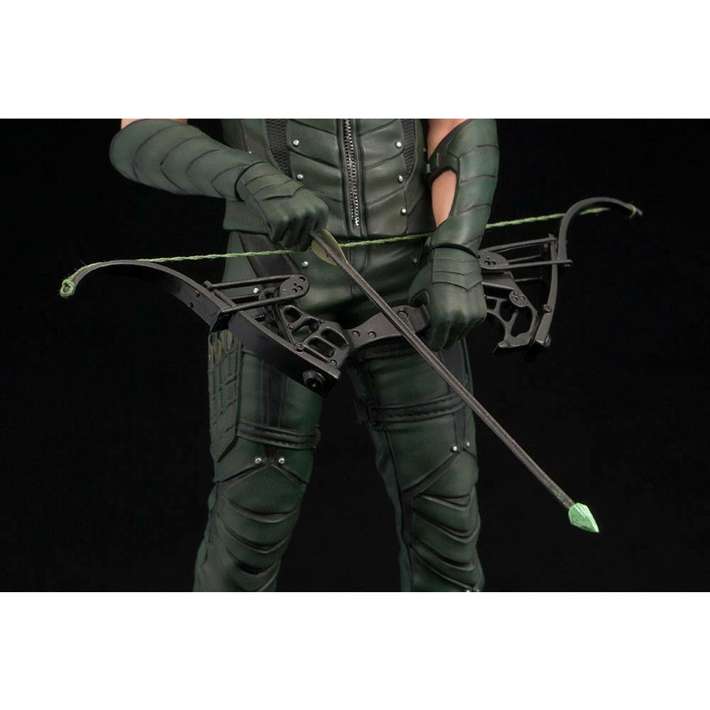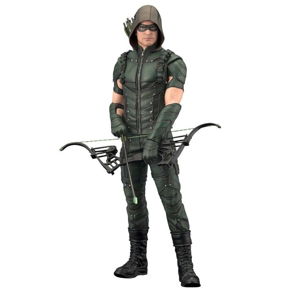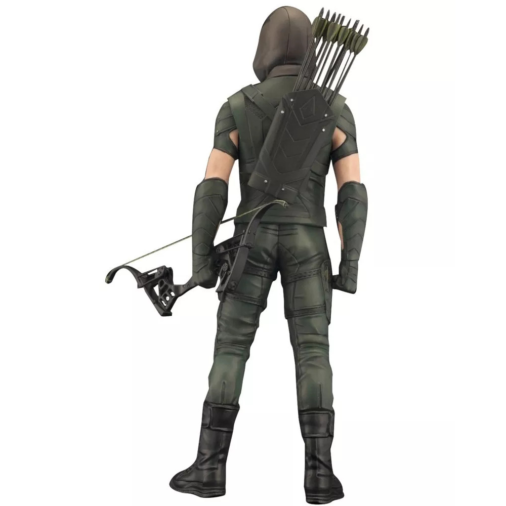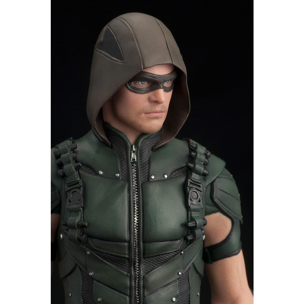 Aceasta statueta minunata il infatiseaza pe indragitul super-erou Green Arrow, asa cum apare in celebra serie TV dedicata lui. Figurina masoara 18 cm si include parti interschimbabile (maini) care permit eroului sa afiseze doua ipostaze diferite, una in