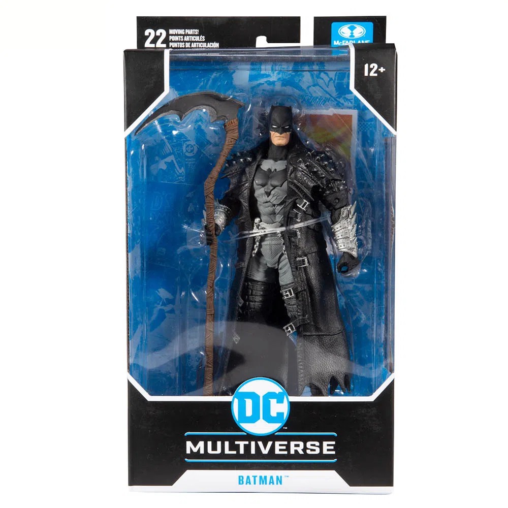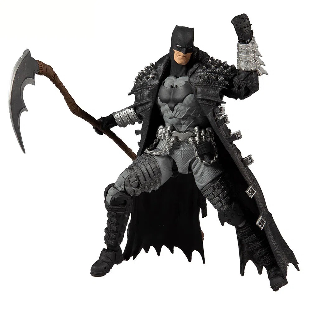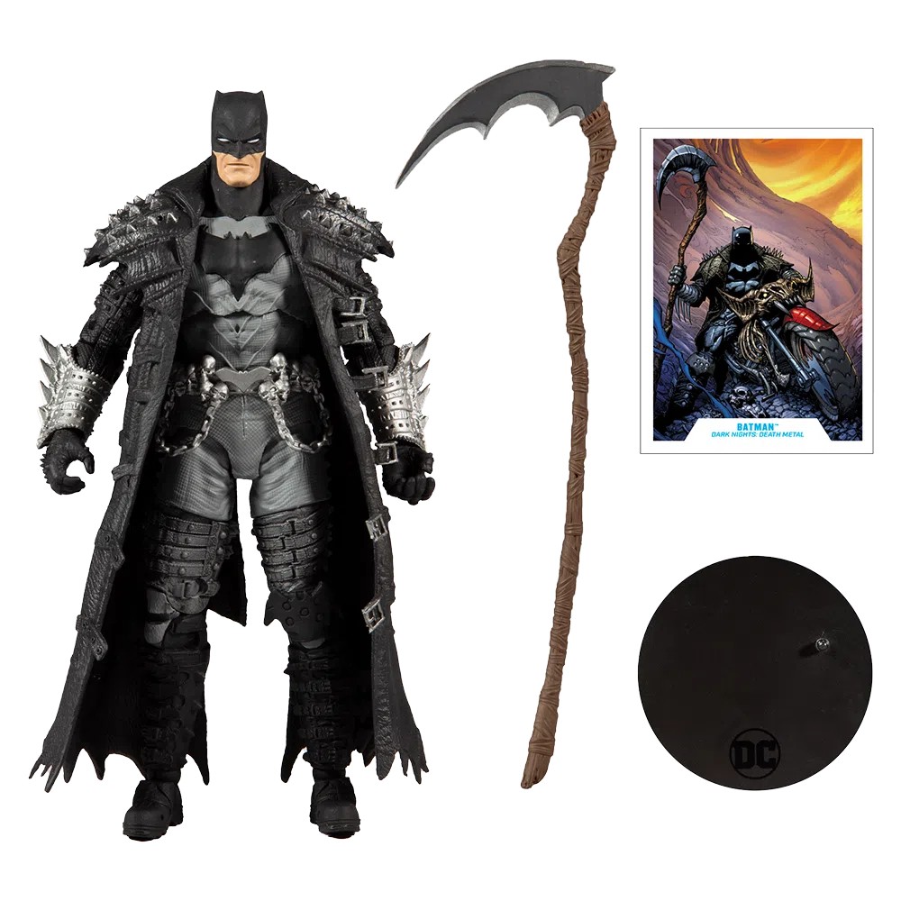 Aceasta figurina articulata Batman este inspirata de editia de benzi desenate Dark Nights: Death Metal #1, din anul 2020. Aceasta figurina vine insotita de o arma si o baza suport. Include un cartonas de colectie cu o biografie a lui Batman pe spate. Mas