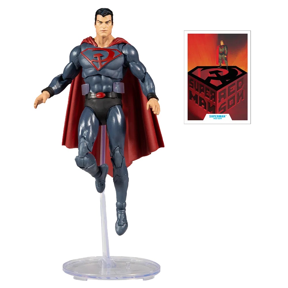 Aceasta figurina articulata Red Son Superman este inspirata de editia de benzi desenate Superman: Red Son (New Edition) (2014). Aceasta figurina vine insotita de o pereche de maine interschimbabile si o baza suport. Include un cartonas de colectie cu o b