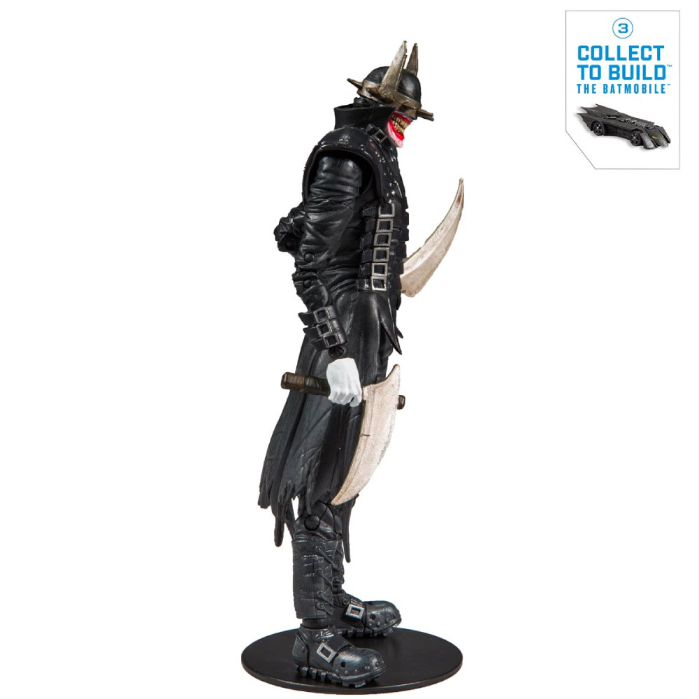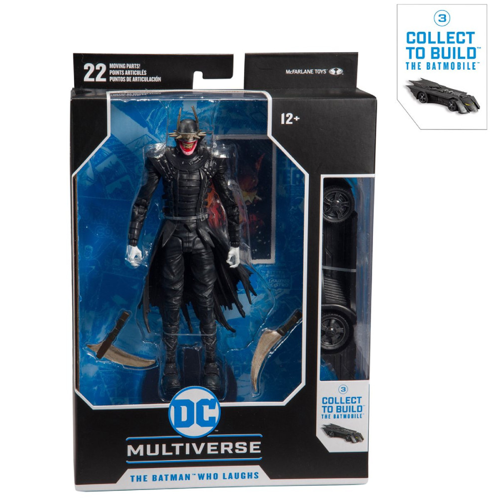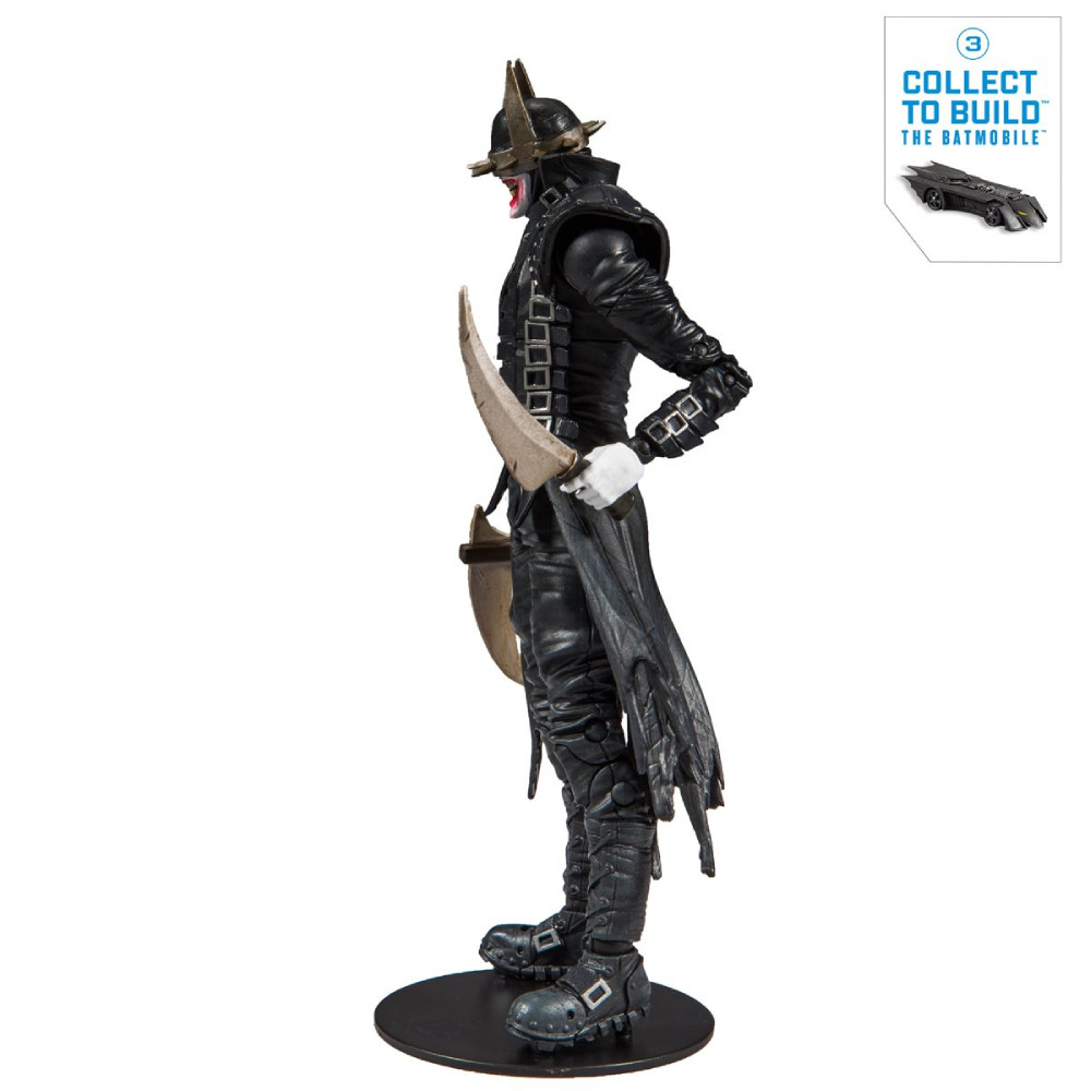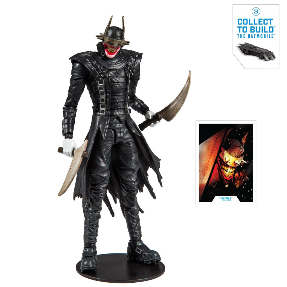 Inspirata din seria Dark Nights: Metal, aceasta figurina articulata il infatiseaza pe Batman Who Laughs care vine insotit de o multime de accesorii interschimbabile. Figurina masoara 18 cm si detine 22 puncte de articulatie. Aceasta figurina articulata B