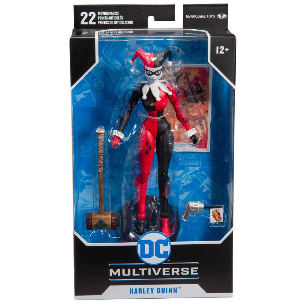 Inspirata din seria DC Rebirth, aceasta figurina articulata o infatiseaza pe Harley Quinn care vine insotita de o multime de accesorii interschimbabile. Figurina masoara 18 cm si detine 22 puncte de articulatie. Cand s-au cunoscut la Arkham Asylum, Joker