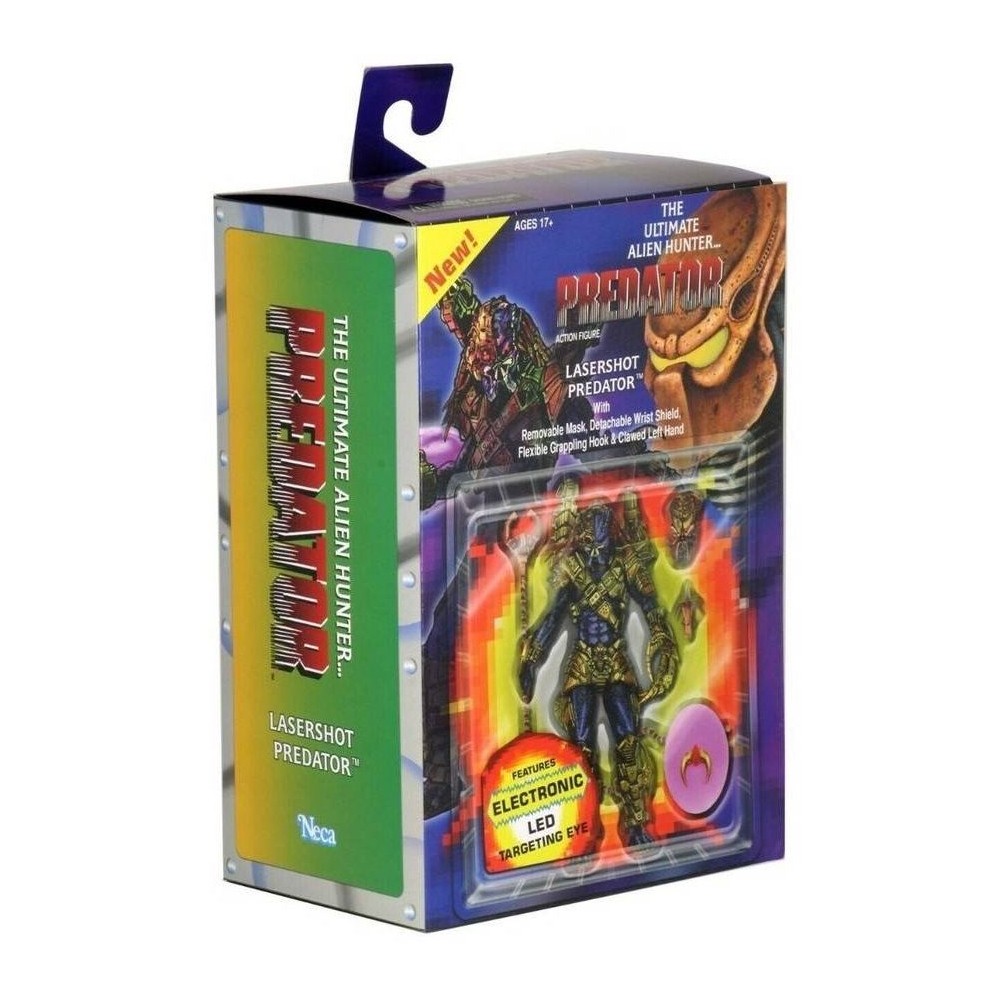 Inspirandu-se din design-ul anilor 1990, Neca a creat un tribut modern cu detalii suplimentare si articulatii pentru a-l aduce pe Predator in noul mileniu. Figurina detine elemente electronice, un ochi cu LED care tinteste pentru a-si atinge prada. Laser