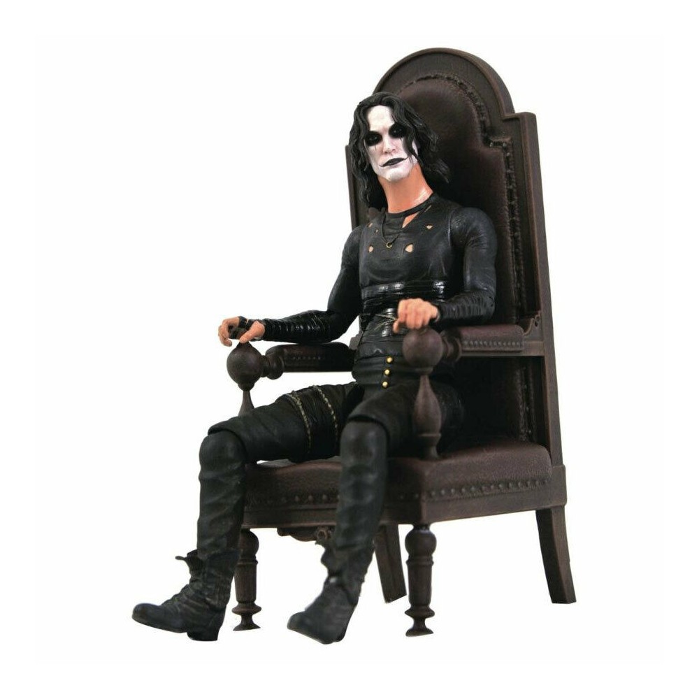 Surprinzand faimoasa imagine a lui Eric Draven asezat pe un scaun sculptat pe platoul de filmare The Crow, acest set San Diego Exclusiv include o figurina este complet articulata si un accesoriu reprezentat de un scaun special. Figurina articulata masoar