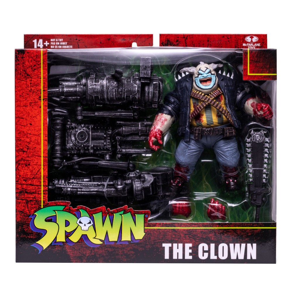 Aceasta figurina articulata Clown este inspirata din universul benzilor desenate Spawn si masoara 18 cm. Figurina detine Ultra Articulation, cu pana la 22 de parti mobile, si este insotita de o baza suport si 4 accesorii.