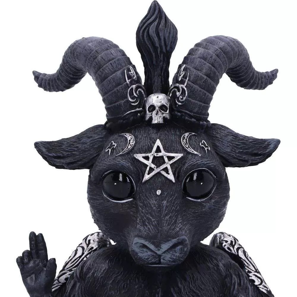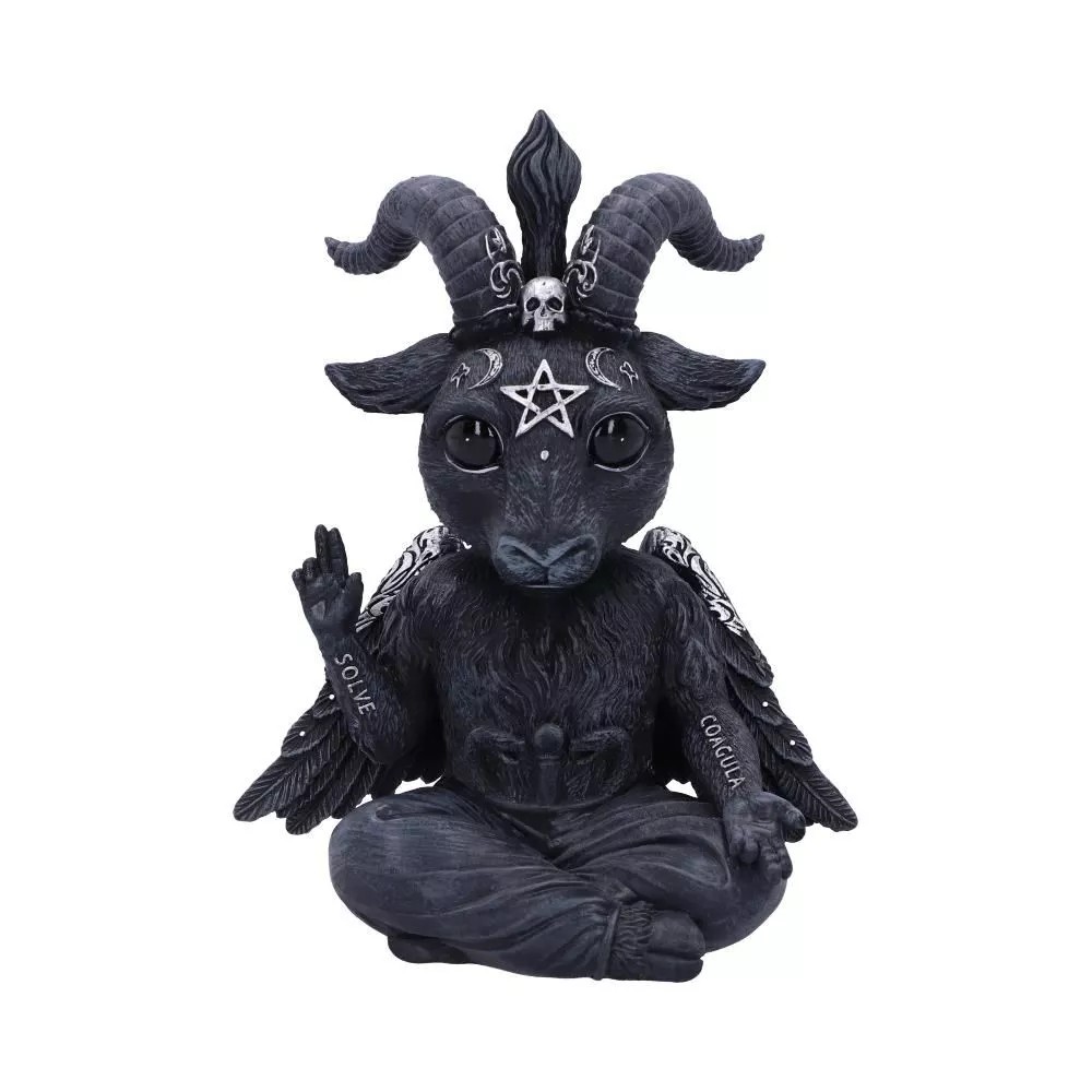 Din ideile fascinante ale brandului alternativ Nemesis Now, a luat nastere acest Baphomet adorabil, cu ochi mari. Stand cu picioarele incrucisate, acest Baby Baphomet in pozitie de meditatie, simbolizeaza suma totala a universului. Masoara 14 cm. Din ras