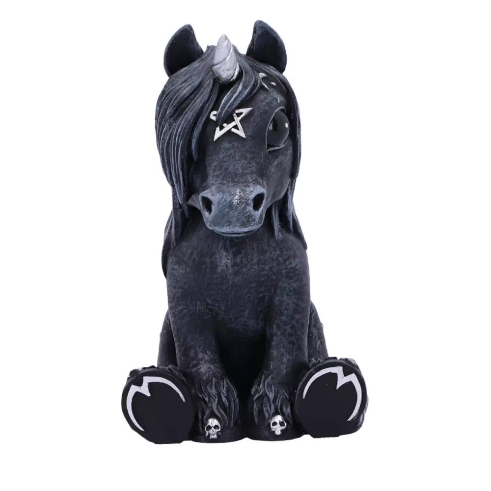 Din ideile fascinante ale brandului alternativ Nemesis Now, a luat nastere aceasta figurina infricosator de adorabila. Ornata cu cranii mici, pentagrame si luni. Masoara 10 cm. Din rasina de cea mai buna calitate. Pictata manual. Perfecta pentru orice co