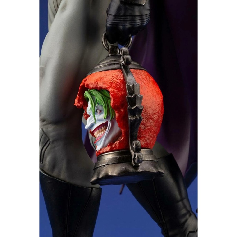 Dark Knight este infatisat in timp ce strabate pamantul cu capul inamicului sau, Joker, pastrat intr-un recipient. Avand o inaltime de 30 cm, aceasta piesa detaliata surprinde forma design-ului unic in creion, specific benzilor desenate.
