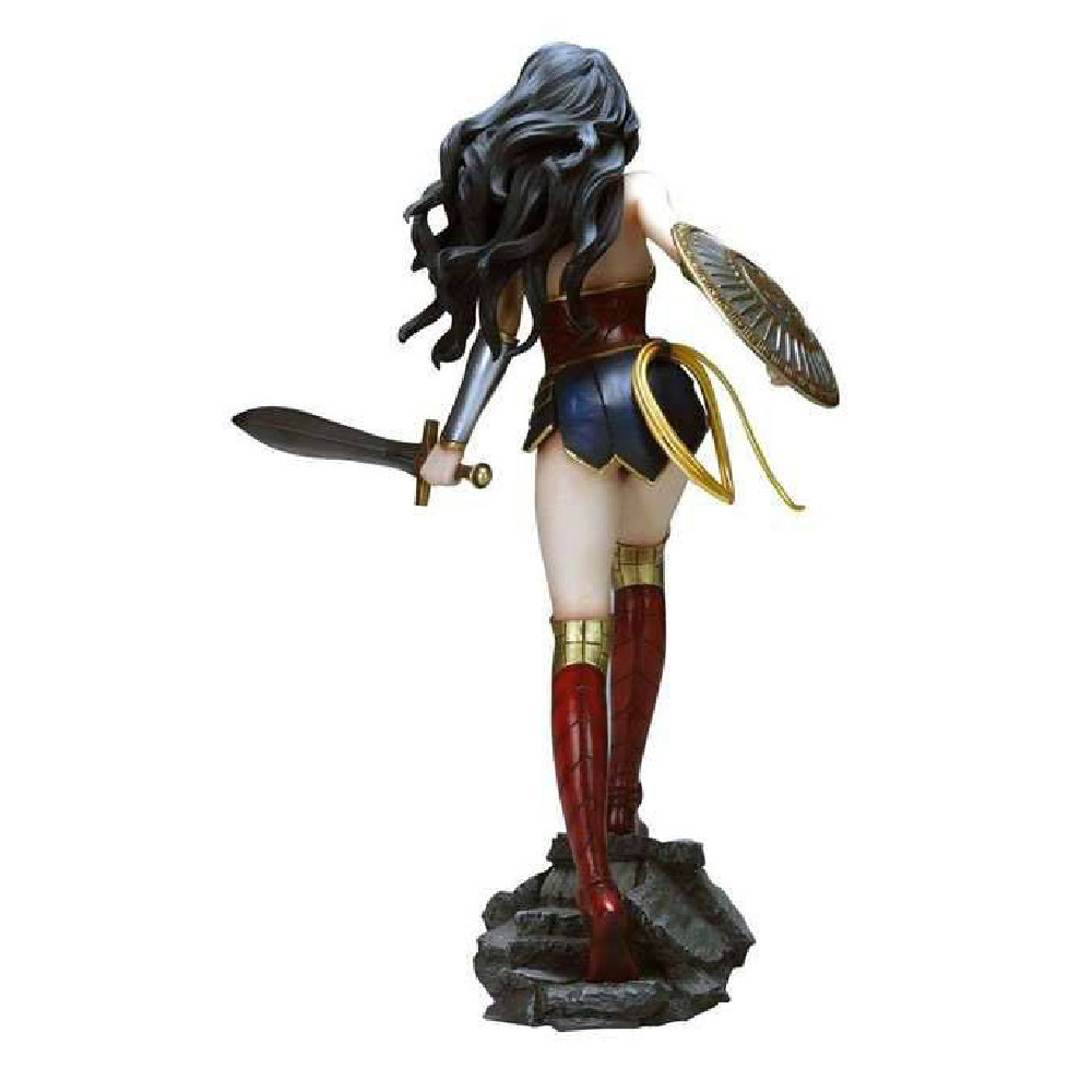 Aceasta statueta o infatiseaza pe celebra eroina DC Comics, pe Wonder Woman echipata cu sabie, scut si Lasoul Adevarului. Statueta masoara 30 cm si este o achizitie perfecta pentru orice colectionar.