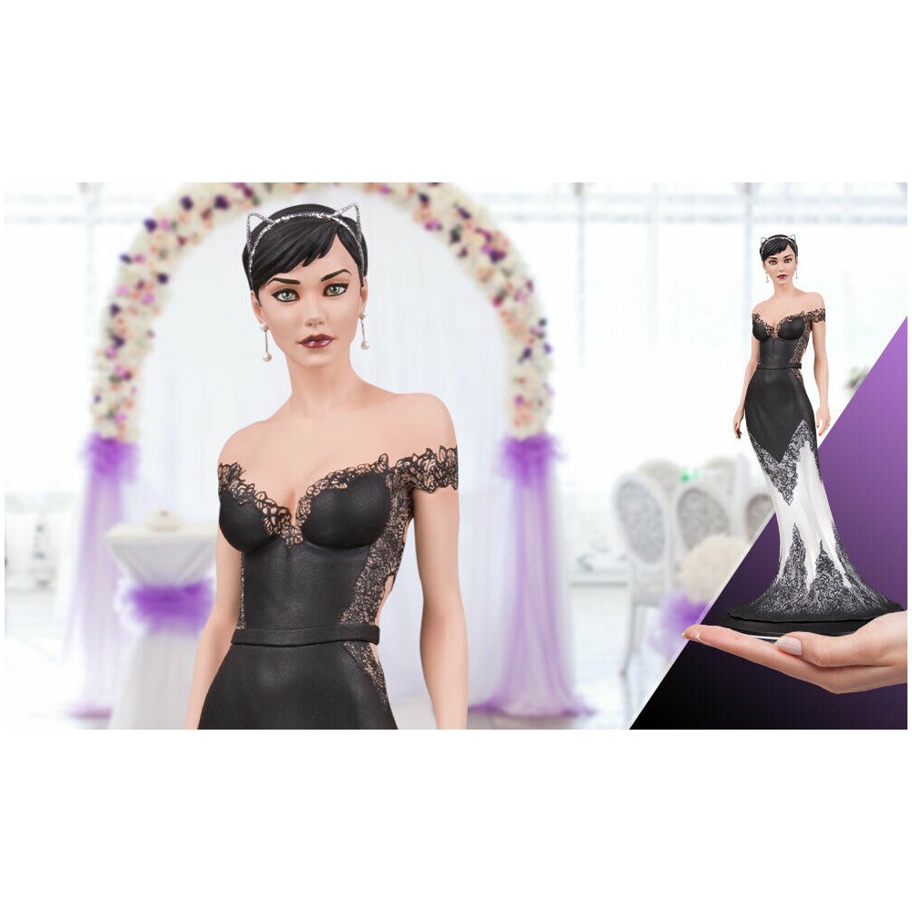 Imbracata in rochia ei de mireasa, devenita iconica, Selina Kyle se pregateste sa se casatoreasca cu Batman, iar aceasta uimitoare statueta DC Cover Girls, inspirata de arta lui Joelle Jones, marcheaza fericitul eveniment. Asa cum a aparut in benzile des