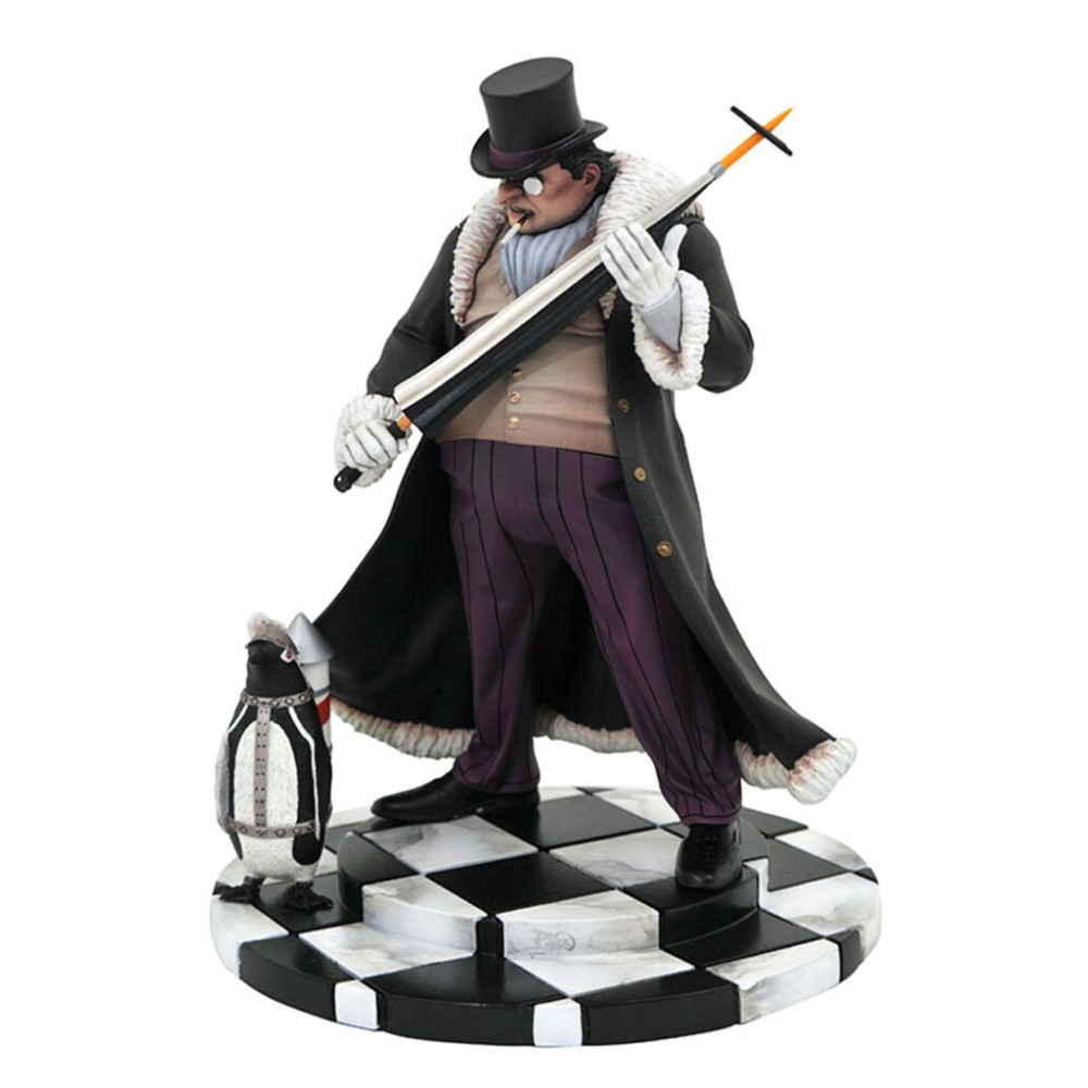 Oswald Cobblepot se alatura seriei DC Gallery in aceasta diorama noua cu Penguin! Dusmanul lui Batman pare amenintator cu umbrela lui care strapunge un Batarang si cu un pinguin langa el care are atasat un propulsor de rachete. Dupa un design al lui Caes