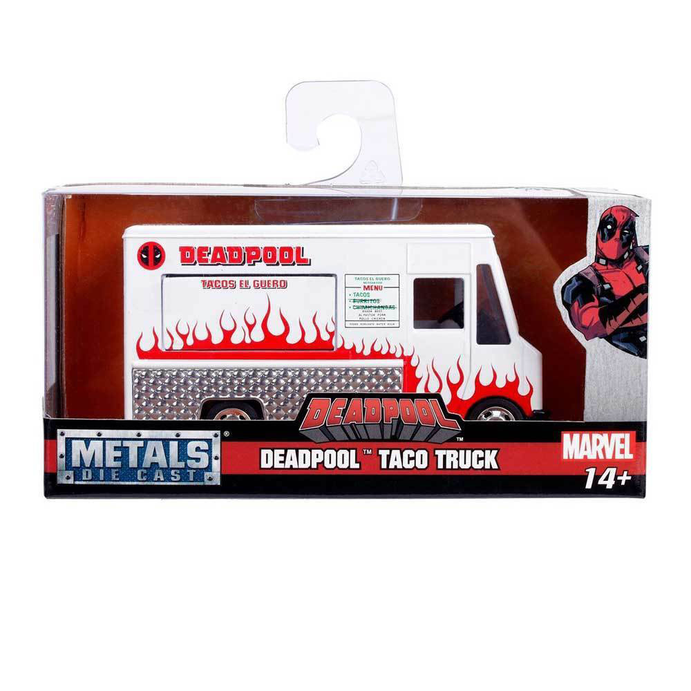 Aceasta figurina de la Jada Toys infatiseaza simpaticul Foodtruck cu sigla Deadpool si face parte din seria Hollywood Rides.
