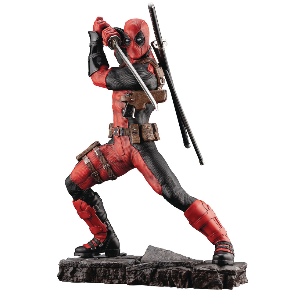 Deadpool face parte acum din editia deluxe fine art si vine cu o statueta impunatoare, care depaseste 30 cm. Cel mai periculos si buclucas super-erou din universul Marvel este gata de lupta si vine sa completeze colectia fanilor sai.