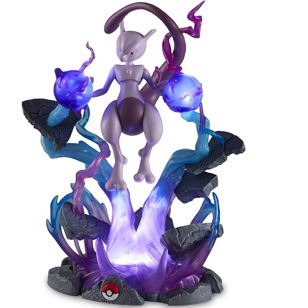 Adaugati in colectia personala aceasta figurina minunata Pokemon Deluxe Mewtwo, la scara 1/10, dotata cu lumini si sunete. Fiti martori la puterea impresionanta a lui Mewtwo cand se ridica de la sol cu energie telekinetica, iluminat cu efecte luminoase c