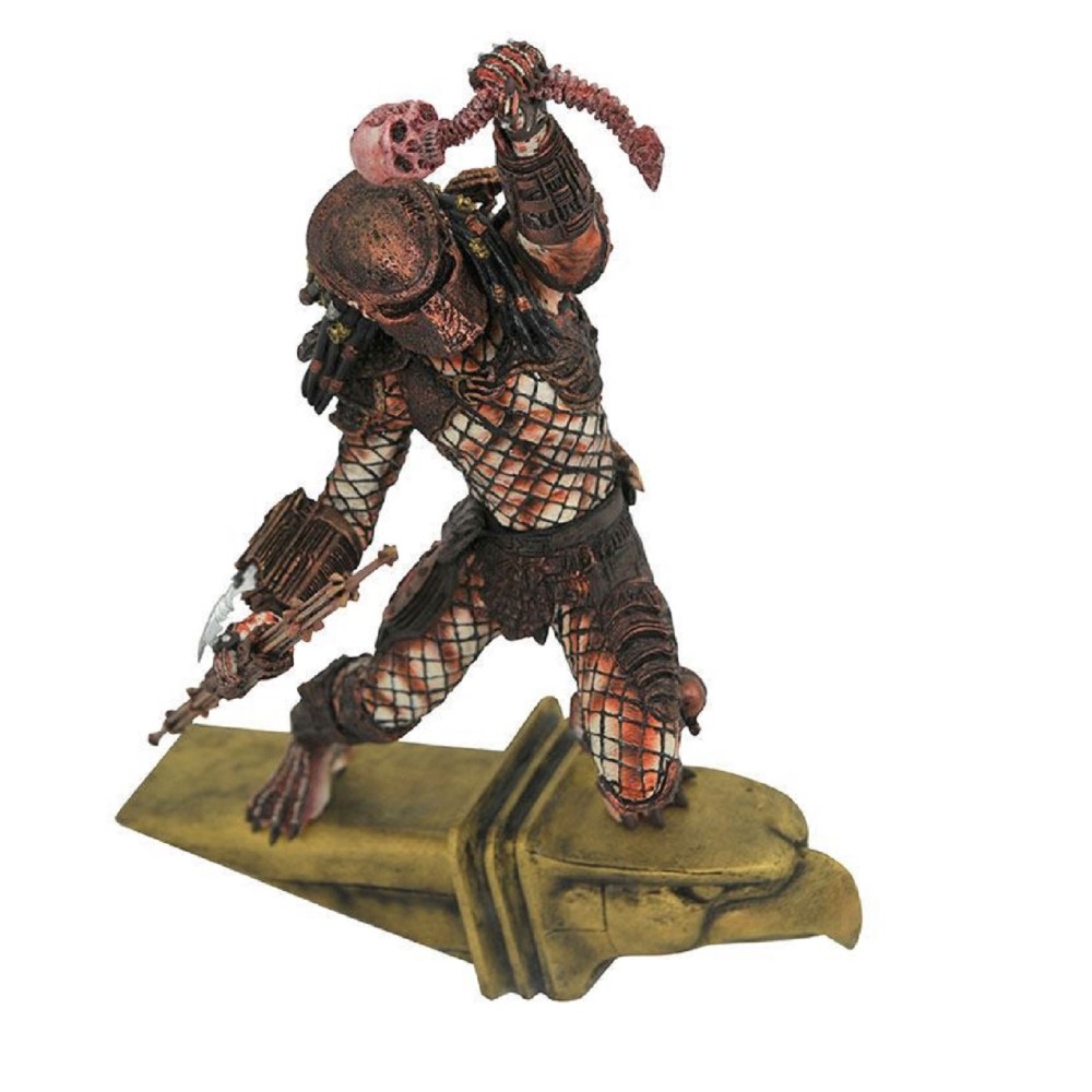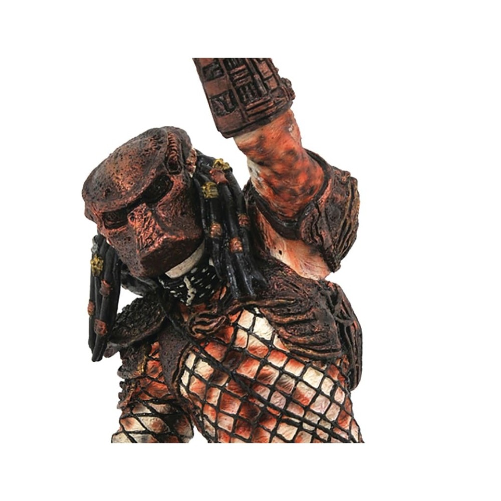 Din filmul clasic Predator 2, avem aceasta figurina care ni-l infatiseaza pe aprigul vanator interstelar intr-un moment de triumf. Figurina de peste 28 cm este realizata dupa schitele lui Caesar si sculptata de Eli Livingston.