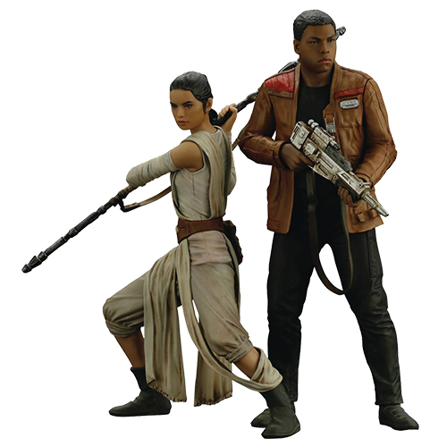 Cele doua personaje principale Rey si Finn din episodul 7 al cunoscutul univers Star Wars se alatura seriei de figurine articulate marca Kotobukiya Artfx+.