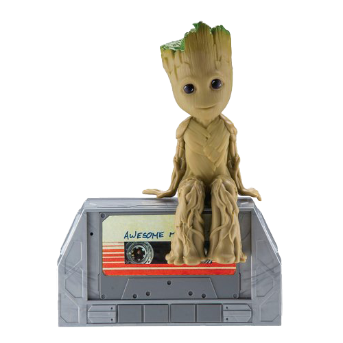 Aceasta figurina cu super-eroul Groot in forma sa Baby Groot se balanseaza ca si cand ar dansa. Caseta pe care sta Groot vine preinregistrata cu cantecul ‘Come a little bit closer’ din al doilea film Guardians of the Galaxy.