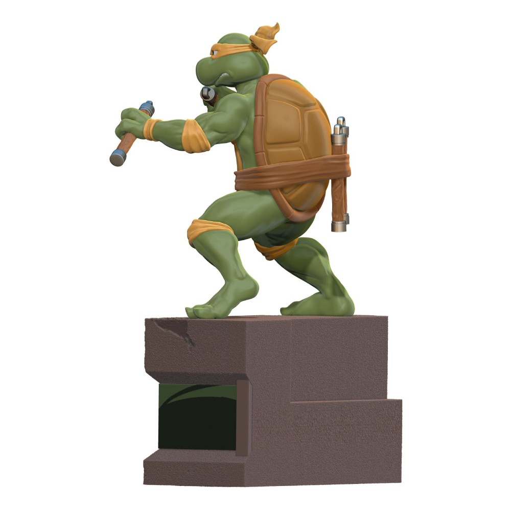 Avand ca inspiratie seria TV animata clasica, Pop Culture Shock Collectibles va prezinta colectia de statuete Teenage Mutant Ninja Turtles, la scara 1/8! Fabricate din PVC, fiecare broscuta testoasa mutanta include o baza reprezentand un acoperis. Colect