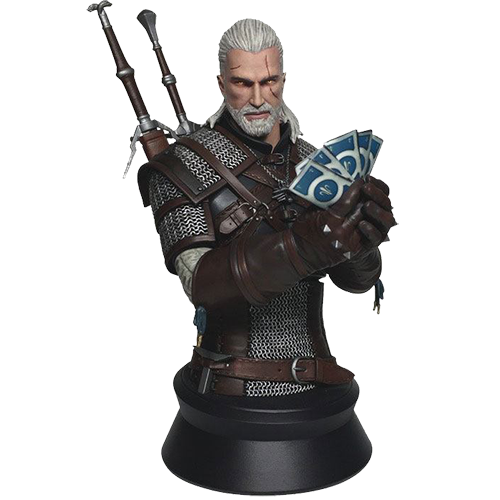 Din jocul video Witcher 3 Wild Hunt vine această statuetă foarte detaliată cu bustul lui Geralt of Rivia.