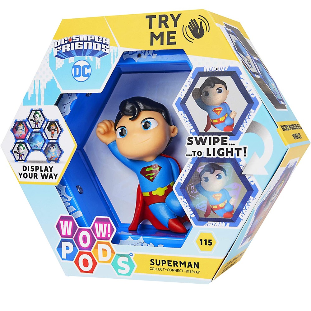 Figurina de colectie cu Superman din universul DC Comics. Exista 4 figurine POD de adus impreuna in aceasta serie: Batman, Superman, Wonder Woman si Joker (se vand separat). Colectionati, conectati si afisati: cutiile se conecteaza in mai multe moduri, a