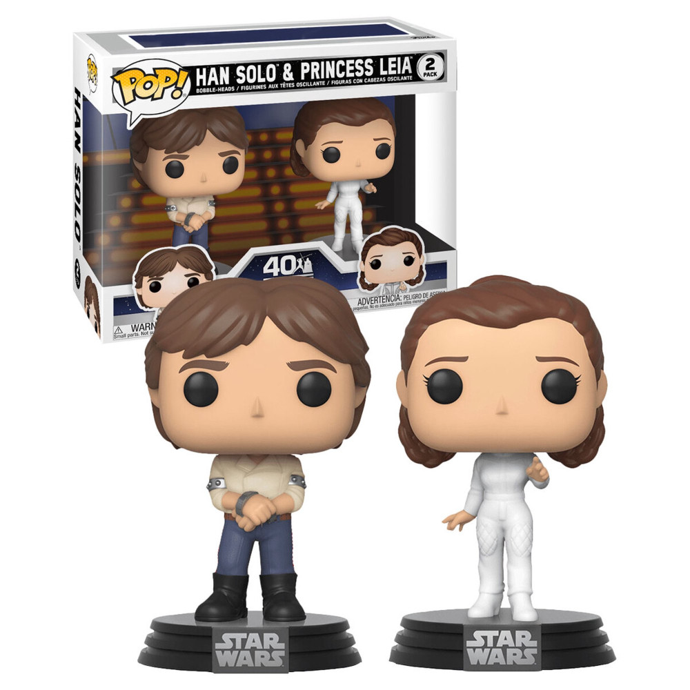 Aceste doua figurine de la Funko Pop! fac parte din minunatul univers Star Wars. Figurinele ii prezinta pe indragitii eroi Han & Leia, care masoara fiecare cate 10 cm si au functia bobble-head.