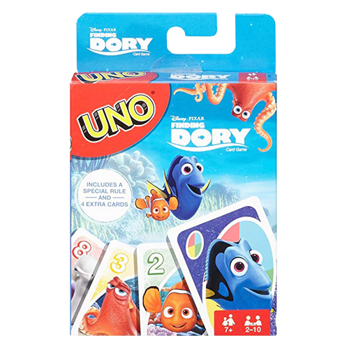 In jocul UNO jucatorii incearca sa scape de cartile din mana inaintea adversarilor. Aceasta versiune a jocului este inspirata din filmul de animatie Finding Dory.