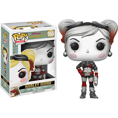 Aceasta figurina adorabila face parte din seria Funko Pop Vinyl, si o reprezinta pe Harley Quinn, mult indragita anti-eroina din universul DC Comics in versiunea sa DC Comics Bombshells.