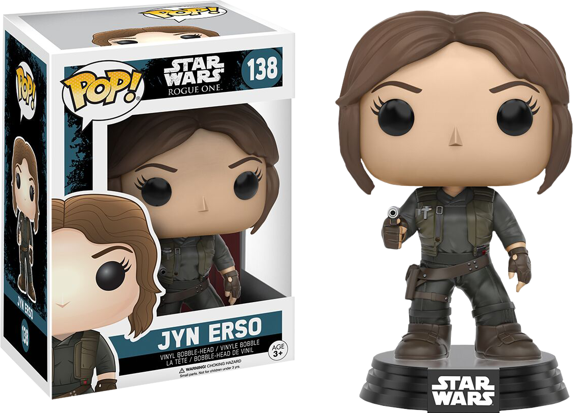 Din popularul film Rogue One: A Star Wars Story, figurina cu protagonista Jyn Erso sub forma de Funko Pop! Vinyl.