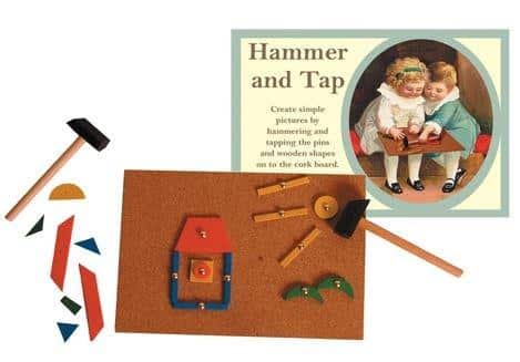 A vintage treat from the 1930’s and 40’s which everyone will remember with love. With 2 hammers, a cork board and various wooden shapes to create all sorts of pictures. Box size 24.5cm x 17.5cm
