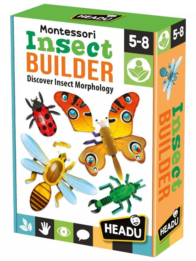 Joaca-te si descopera cum sunt create insectele! Stiai ca corpul unei insecte este format din trei parti? Si ca au sase picioare? Siluetele continute in acest kit sunt modulare si iti permit sa asamblezi patru tipuri diferite de insecte si sa inventezi cate doresti! Vei gasi si un manual ilustrat!Headu creeaza jocuri, jucarii, carti si aplicatii distractive si de inalta calitate pentru dezvoltarea abilitatilor de baza ale copiilor, cu o metoda de predare inovatoare.