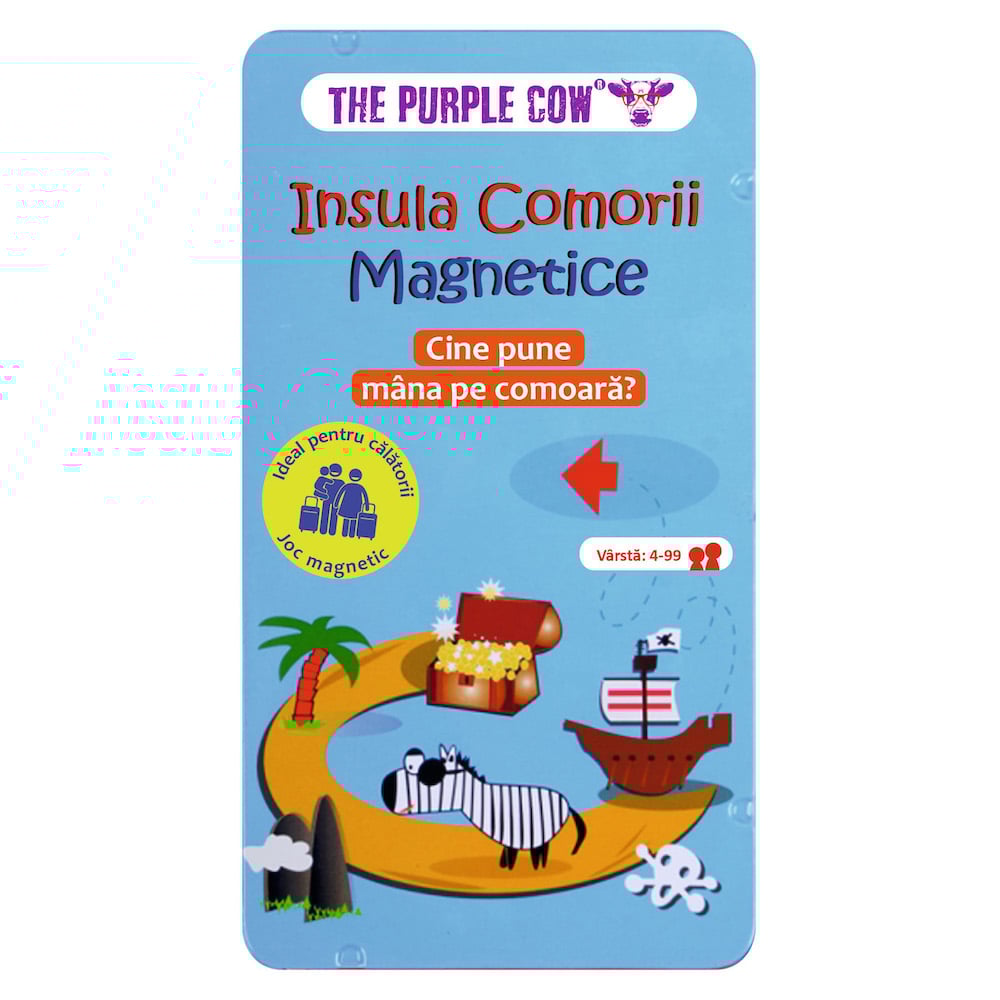 Insula comorii magnetice este un joc cu cutie metalica, cu piese magnetice, ideal pentru calatorii( incape in locuri mici). Un joc distractiv, rapid si cu reguli „simple si clare”. Asezati piratii pe tabla si incercati cucerirea comorilor inaintea adversarilor. Pe rand fiecare va arunca cu zarul, apoi va face mutari in functie de cat va indica acesta. Castiga jucatorul care va ajunge exact la comoara. Pachetul contine:- 16 piese magnetice (4 din fiecare culoare si un zar);- regulament in limba romana. Dimensiuni produs in ambalaj: 10 x 2 x 18.5 cmGreutate produs: 0.170 kgVarsta recomandata: 4 ani +