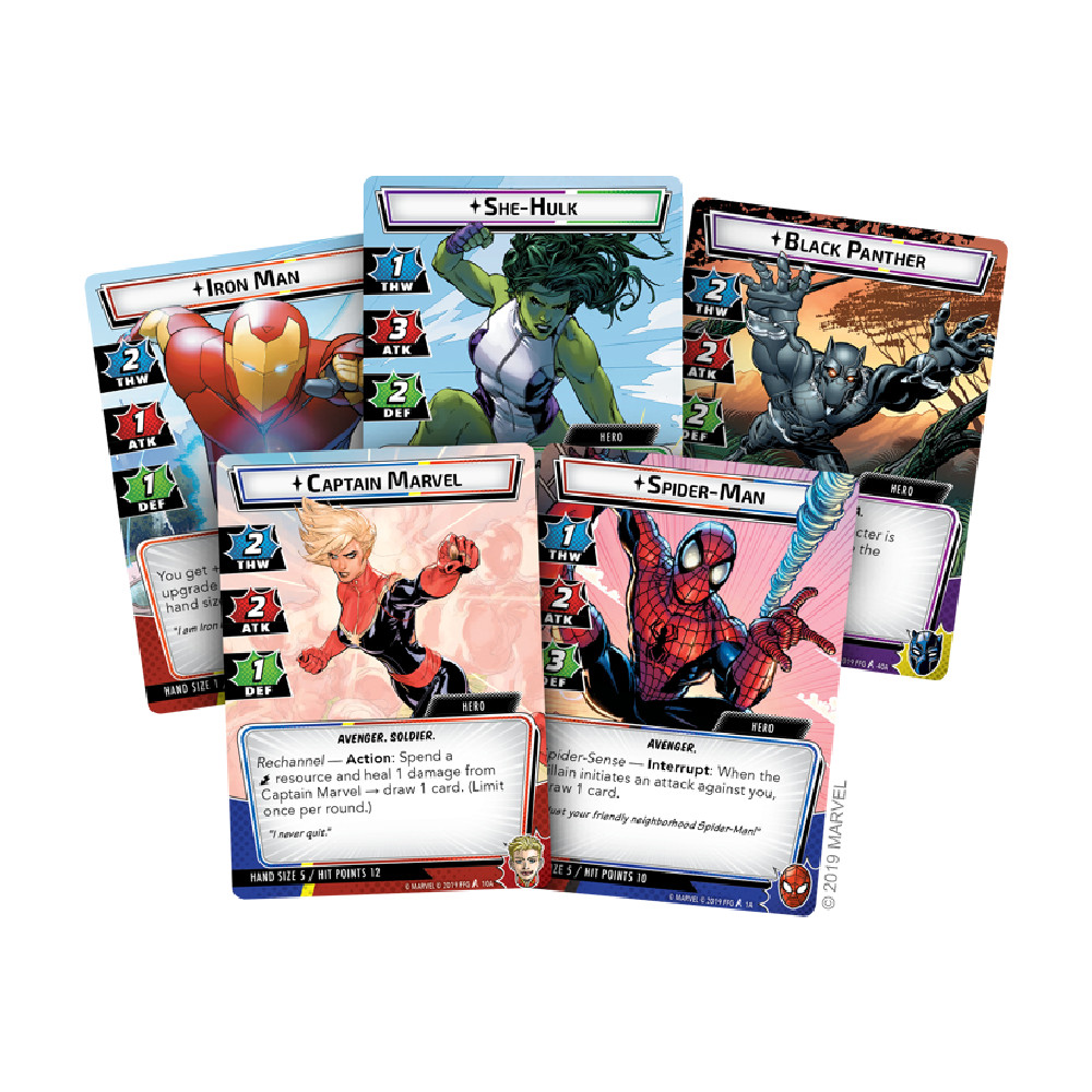 Marvel Champions The Card Game isi invita jucatorii sa paseasca in lumea eroilor celebri ai Universului Marvel si sa ia parte la lupta contra unor raufacatori infami. Facand parte din categoria de jocuri Living Card Game, jucatorii beneficiaza periodic d