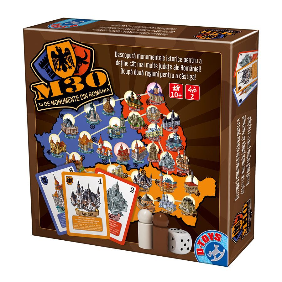 Descopera monumentele istorice pentru a detine cat mai multe judete ale Romaniei! Ocupa doua regiuni pentru a castiga! Continut: 1 tabla de joc cu harta Romaniei, 32 carti de joc cu monumente, 49 jetoane de joc, 1 zar, 2 pioni, regulament de joc. Jocul dezvolta cultura generala si gandirea strategica.