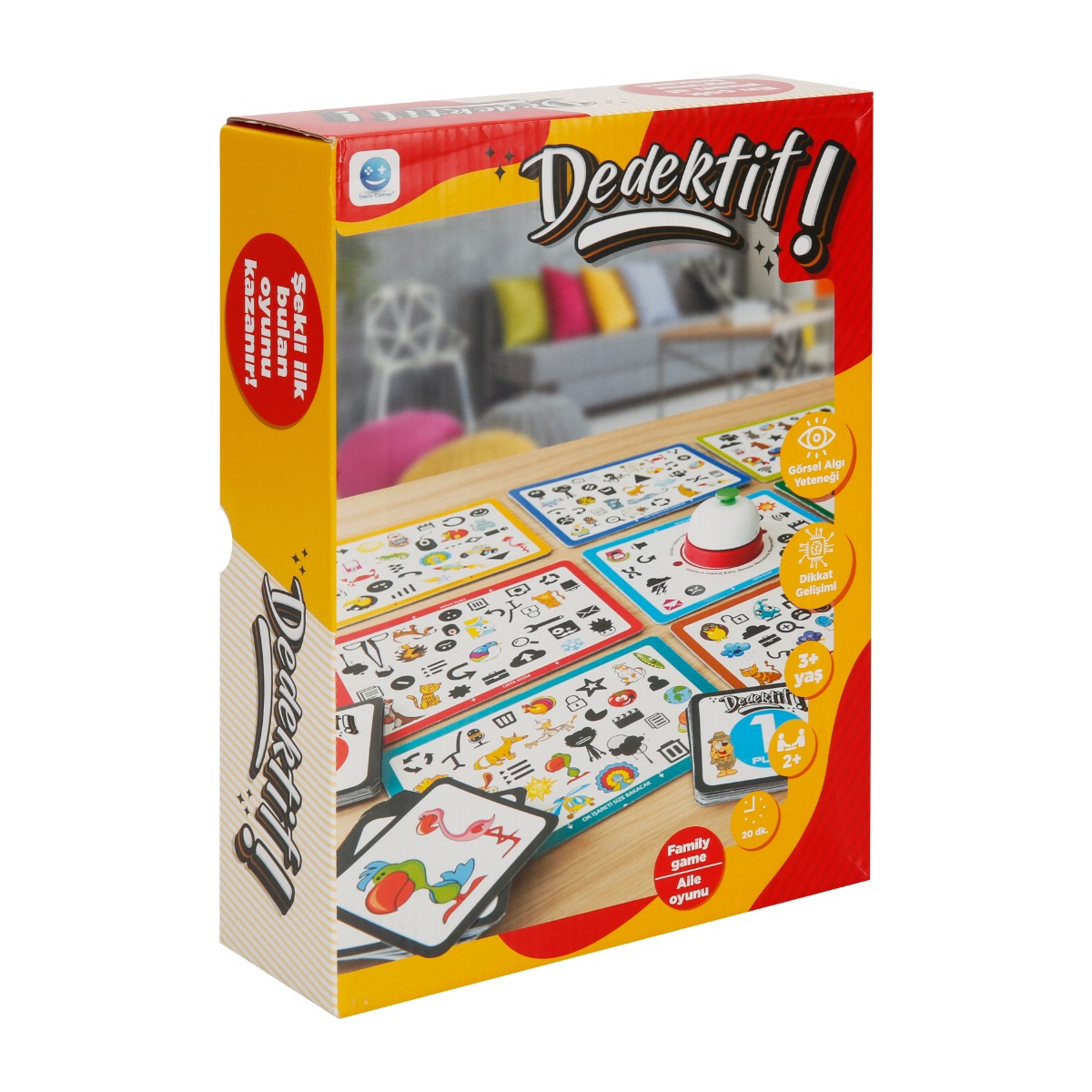 Sunteti gata sa va masurati atentia cu detectivul? Persoana care gaseste forma cel mai repede castiga jocul! Cum sa joci?9 table de joc sunt aranjate cate trei. Tabloul de joc cu imaginea clopotelului ar trebui sa se afle la mijlocul acestei linii. Clopotelul de joc trebuie asezat pe tava situata in mijloc. Punctele se strang in functie de numarul de forme de pe card. Jocul continua pana cand cartile dispar. La sfarsitul jocului, persoana cu cel mai mare scor castiga jocul. Setul include:- 9 table de joc;- 1 clopotel;- 64 de carti de joc. Dimensiune articol ambalat: 25 x 7 x 18 cmVarsta recomandata: 3 ani +